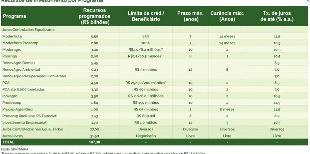 Governo lança Plano Safra 24/25 com recursos para geração de energia renovável Política by Portal Meus Investimentos - 4 de julho de 2024 A boa notícia é que parte desse crédito pode ser usado para investimentos em sustentabilidade, como na geração de energia solar no meio rural. Para impulsionar o setor agropecuário brasileiro, o Governo Federal lança o Plano Safra 2024/2025, no âmbito do Ministério da Agricultura e Pecuária (Mapa), oferecendo linhas de crédito, incentivos e políticas agrícolas para médios e grandes