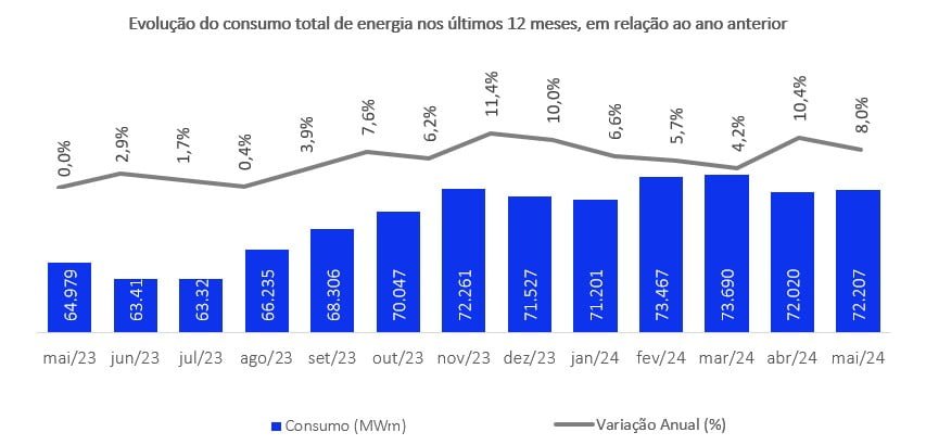 CCEE mostra aumento de 8% no consumo de energia em maio Economia by Portal Meus Investimentos - 9 de julho de 2024 Publicidade Dados revelam que RS registrou queda de 2,6%, impacto da crise climática e das enchentes que atingiram o estado no começo do mês A Câmara de Comercialização de Energia Elétrica – CCEE, que recebe em tempo real e acompanha de perto os dados do setor, divulga que o Brasil encerrou maio com consumo de 70.207 megawatts médios, aumento de 8% em relação ao mesmo mês do ano passado. As informações são do Boletim InfoMercado Quinzenal, produzido pela organização com o intuito de antecipar as principais movimentações do mês anterior com qualidade e agilidade. Os dados demonstram, pela primeira vez, os impactos da crise climática na demanda do Rio Grande do Sul, que caiu 2,6% no período. O mercado regulado, em que os consumidores menores compram sua energia das distribuidoras, sofre uma maior influência do clima. Por conta do calor registrado em quase todo o país, o consumo no segmento avançou 12,3% na comparação anual. Já no ambiente livre, no qual o comprador pode escolher de quem quer adquirir seu fornecimento e negociar condições de contrato, houve um aumento de 1,8% frente a igual período de 2023 Evolução do consumo total de nergia nos ultimos 12 meses – Fonte: CCEE Consumo por ramo de atividade econômica A CCEE, em busca de oferecer informações de qualidade que apoiem a economia do país, também monitora o consumo de energia elétrica em 15 ramos de atividade. As maiores altas de maio, na comparação com o mesmo período do ano passado, foram observadas pela Câmara nos setores de Madeira, Papel e Celulose (7,4%), Saneamento (6,5%) e Bebidas (6%). Entre os que registraram maior declínio estão a indústria têxtil (-6,5%), químicos (-4,5%) e veículos (-2,1%) Consumo por ramo de atividade econômica – Fonte: CCEE Consumo por região Todo os estados apresentaram alta no consumo de eletricidade em maio, segundo os dados exclusivos da CCEE. Neste período, comumente, o país registra avanço de frentes frias, mas a situação inversa, de ondas de calor e menos chuva, elevou o consumo de eletricidade em todas as regiões. Destaque para o Mato Grosso do Sul (13,3%), Paraná (10,7%), São Paulo (10,3%) e Amazonas (8,9%). Rondônia e Rio Grande do Sul tiveram queda no consumo em -2,6%. A situação no estado gaúcho é impactada diretamente pelas enchentes e a crise climática no começo de maio. Consumo por região – Fonte: CCEE Geração de energia As hidrelétricas entregaram quase 50 mil megawatts médios para o Sistema Interligado Nacional – SIN, avanço de 2,2% no comparativo anual, contribuindo para manter o Brasil na vanguarda da produção de energia renovável. Os parques eólicos, segunda principal fonte do país, geraram 12,8 mil MW médios, montante 26% maior frente a igual período do ano passado. As fazendas solares também tiveram bom desempenho, com mais de 3,11 mil MW médios, avanço de 50%. Geração de energia por fonte – Crédito: CCEE Fonte: CCEE | Comercialização Consumo Distribuição Geração Mercado Quer saber quanto custa instalar seu Sistema Solar? Vamos precisar coletar algumas informações básicas, preencha os dados abaixo para nossos Epecialistas dimensionar sua Usina Solar sem compromisso com economia de até 95%.“Sem compromisso, totalmente GRATUITO” Informe o seu CEP:* Quanto você gasta de luz?* Nome* E-mail* Telefone* Ao prosseguir você está de acordo com os Termos e Condições de Uso do Portal Energia LimpaAceito os Termos SOLICITAR UMA SIMULAÇÃO O post CCEE mostra aumento de 8% no consumo de energia em maio apareceu primeiro em Portal Energia Limpa. Compartilhe isso: Clique para compartilhar no Facebook(abre em nova janela) Facebook Clique para compartilhar no X(abre em nova janela) 18+ Clique para compartilhar no WhatsApp(abre em nova janela) WhatsApp Clique para compartilhar no Telegram(abre em nova janela) Telegram Mais Clique para compartilhar no LinkedIn(abre em nova janela) LinkedIn Clique para compartilhar no Tumblr(abre em nova janela) Tumblr Clique para imprimir(abre em nova janela) Imprimir Relacionado