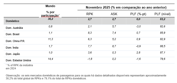 Demanda mundial por transporte aereo cresceu 5,7 por cento Economia by Portal Meus Investimentos - 11 de janeiro de 2026 Publicidade Análise Comparativa do Desempenho do Transporte Aéreo Global Análise do Desempenho do Transporte Aéreo Global (Comparativo com Novembro de 2024) Por Misto Brasil – DF A demanda global de passageiros no setor aéreo apresentou um crescimento de 5,7% em comparação com novembro de 2024, de acordo com dados divulgados pela Associação de Transporte Aéreo Internacional (IATA). No âmbito doméstico, os RPKs (receita por passageiro por quilômetro) cresceram 2,7% em relação a novembro de 2024. A taxa de ocupação doméstica manteve-se estável em 83,2%, suportada por um aumento de capacidade de 2,7%. Os mercados que apresentaram o crescimento mais rápido neste segmento foram Brasil e Índia. A capacidade total, medida em assentos por quilômetro disponíveis (ASK), registrou um aumento de 5,4%. A taxa de ocupação geral foi de 83,7% (um avanço de 0,3 ponto percentual em relação a novembro de 2024), marcando o nível mais alto já registrado para o mês de novembro. A demanda internacional apresentou um crescimento notável de 7,7% em comparação com novembro de 2024. A capacidade associada a este segmento cresceu 7,1% no comparativo anual, resultando em uma taxa de ocupação de 84% (+0,4 ponto percentual). Por outro lado, a demanda doméstica aumentou 2,7% em relação a novembro de 2024. A capacidade teve uma expansão equivalente de 2,7% na comparação anual, e a taxa de ocupação ficou em 83,2%, sem alterações em relação a novembro de 2024. Willie Walsh, diretor-geral da IATA, comentou sobre os desafios futuros: “A resolução de Ano Novo para o setor de manufatura deve ser aumentar a produção para atender às necessidades de seus clientes do setor aéreo. O backlog de mais de 17 mil pedidos de aeronaves alcançado em 2025 precisa ser reduzido em 2026”. Desempenho Segmentado por Região Global Companhias aéreas da Ásia-Pacífico lideraram o crescimento, registrando um aumento de 9,3% na demanda em relação ao mesmo período do ano anterior. A capacidade acompanhou com um crescimento de 8,7% na comparação anual, elevando a taxa de ocupação para 85,8% (+0,5 ponto percentual em relação a novembro de 2024). As tensões geopolíticas influenciaram o tráfego entre China e Japão, que desacelerou para um crescimento de um dígito pela primeira vez em 2025. As companhias aéreas europeias apresentaram um aumento de 6,8% na demanda em relação ao ano anterior. A capacidade subiu 6,1% na comparação anual, e a taxa de ocupação atingiu 85,6% (+0,5 ponto percentual em relação a novembro de 2024). As companhias da América do Norte registraram um crescimento de demanda de 4,0% em relação ao ano anterior. A capacidade aumentou 4,2% anualmente, mas a taxa de ocupação ficou em 81,0% (-0,1 ponto percentual em relação a novembro de 2024). A América do Norte acumulou dez meses seguidos de queda anual no fator de ocupação, considerando o tráfego total. As companhias do Oriente Médio reportaram um aumento de 9,6% na demanda em relação ao ano anterior. A capacidade cresceu 9,2% anualmente, e a taxa de ocupação alcançou 81,4% (+0,3 ponto percentual em relação a novembro de 2024). As companhias aéreas da América Latina tiveram um aumento de demanda de 4,4% em relação ao ano anterior. A capacidade avançou 4,7% anualmente, com a taxa de ocupação fixada em 83,9% (-0,2 ponto percentual em relação a novembro de 2024). As companhias africanas se destacaram positivamente, apresentando o maior aumento percentual na demanda, com alta de 11,2% em relação ao ano anterior. A capacidade cresceu 8,5% anualmente, e a taxa de ocupação atingiu 74,3% (+1,8 ponto percentual em relação a novembro de 2024). Visão Geral Em resumo, o setor aéreo global demonstrou forte crescimento na demanda internacional (+7,7%) e doméstica (+2,7%) em novembro de 2024, resultando em uma taxa de ocupação recorde de 83,7% para o mês. Enquanto as regiões da Ásia-Pacífico e África registraram os maiores avanços em demanda, a América do Norte enfrentou uma leve queda na ocupação. A IATA reforça a necessidade urgente de aumentar a produção de aeronaves para atender aos pedidos acumulados. Créditos: Misto Brasil Veja tudo de ” Demanda mundial por transporte aereo cresceu 5,7 por cento ” em: Portal Energia Limpa. Compartilhe isso: Clique para compartilhar no Facebook(abre em nova janela) Facebook Clique para compartilhar no X(abre em nova janela) 18+ Clique para compartilhar no WhatsApp(abre em nova janela) WhatsApp Clique para compartilhar no Telegram(abre em nova janela) Telegram Mais Clique para compartilhar no LinkedIn(abre em nova janela) LinkedIn Clique para compartilhar no Tumblr(abre em nova janela) Tumblr Clique para imprimir(abre em nova janela) Imprimir Relacionado