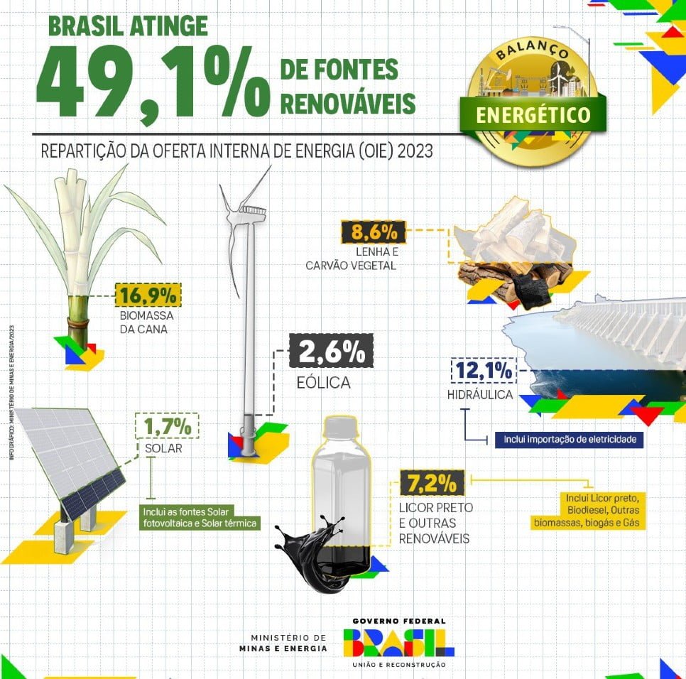 Energia Renováveis atingem 49.1% na matriz energética brasileira Energia Limpa by Portal Meus Investimentos - 22 de junho de 2024 Aumento da renovabilidade nos últimos anos evidencia ainda mais a liderança do Brasil nas ações que visam à transição energética por meio da inserção de novas fontes Nos últimos dois anos, a participação das renováveis na Oferta Interna de Energia (OIE) brasileira aumentou para 49,1%, em 2023. Em 2021, o percentual de fontes renováveis na matriz energética brasileira era de 45%. O dado foi divulgado, nesta semana, no Balanço Energético Nacional (BEN) 2024 elaborado pela Empresa de Pesquisa Energética (EPE) em parceria com Ministério de Minas e Energia (MME). “Esses dados mostram o resultado das ações que temos feito à frente do MME, sob a liderança do presidente Lula, para desenvolver e fortalecer a transição energética justa e inclusiva. Seguimos liderando os diálogos mundiais sobre o tema, atraindo investimentos para aumentar cada vez mais o papel de protagonista do país na nova economia verde, na economia da energia renovável”, explicou o ministro Alexandre Silveira sobre os dados divulgados. De acordo com o BEN 2024, os altos níveis de renovabilidade na Oferta Interna de Energia foram assegurados especialmente pelo desenvolvimento das fontes eólica, solar e biomassa. A energia hidráulica manteve-se estável com regime hídrico favorável, aponta o documento. O incremento das fontes renováveis nas últimas duas décadas evidencia a liderança que o Brasil vem apresentando nas ações que visam à transição energética, especialmente por meio da inserção e fortalecimento de novas fontes na matriz energética brasileira. E a meta é aumentar ainda mais. Os esforços do Ministério de Minas e Energia têm sido de atrair investimentos na área, aumentando a participação das renováveis no país, descarbonizando setores e gerando emprego, renda e oportunidades para a população. Mais detalhes sobre o BEN Elaborado com base em dados levantados pela EPE, o Balanço Energético Nacional é divulgado anualmente e traz uma extensa pesquisa e a contabilidade de informações relativas à oferta e consumo de energia no Brasil. O relatório contempla as atividades de extração de recursos energéticos primários, sua conversão em formas secundárias, a importação e exportação, a distribuição e o uso final da energia. Esta é uma série de matérias que serão divulgadas até a próxima semana para detalhar os principais destaques do BEN 2024 em relação aos setores de energia elétrica, planejamento energético, petróleo, gás natural e biocombustíveis. Assessoria Especial de Comunicação Social – MME Fonte: Assessoria Especial de Comunicação Social – MME Energia Solar Compartilhada sem investimentos ou obras! Quer começar a economizar agora? Insira seus dados abaixo que a nossa equipe entra em contato e cuida do restante. Nome* E-mail* Telefone* UF:ACRE ALAGOAS AMAPÁ AMAZONAS BAHIA CEARÁ DISTRITO FEDERAL ESPIRITO SANTO GOIÁS MARANHÃO MATO GROSSO MATO GROSSO DO SUL MINAS GERAIS PARÁ PARAÍBA PARANÁ PERNAMBUCO PIAUÍ RIO DE JANEIRO RIO GRANDE DO NORTE RIO GRANDE DO SUL RONDÔNIA RORAIMA SANTA CATARINA SÃO PAULO SERGIPE TOCANTINS Economia para: ResidênciaComércio EU QUERO ECONOMIZAR… O post Energia Renováveis atingem 49.1% na matriz energética brasileira apareceu primeiro em Portal Energia Limpa. Compartilhe isso: Clique para compartilhar no Facebook(abre em nova janela) Facebook Clique para compartilhar no X(abre em nova janela) 18+ Clique para compartilhar no WhatsApp(abre em nova janela) WhatsApp Clique para compartilhar no Telegram(abre em nova janela) Telegram Mais Clique para compartilhar no LinkedIn(abre em nova janela) LinkedIn Clique para compartilhar no Tumblr(abre em nova janela) Tumblr Clique para imprimir(abre em nova janela) Imprimir Relacionado