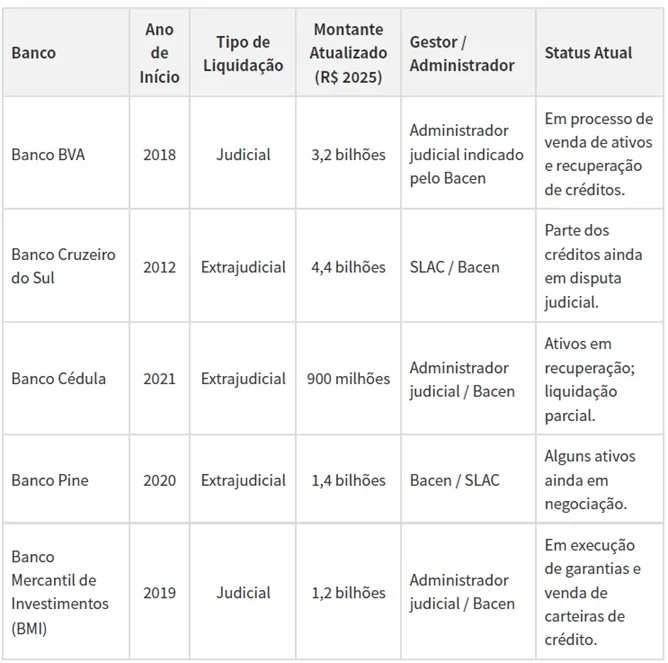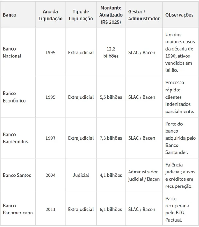 Liquidações no Banco Central se Arrastam por Anos Economia by Portal Meus Investimentos - 13 de janeiro de 2026 Publicidade Auditoria do Senado Federal Aponta Falhas no Banco Central e Sugere Intervenção Judicial em Liquidações Bancárias Auditoria do Senado Federal Aponta Falhas no Banco Central e Sugere Intervenção Judicial em Liquidações Bancárias Por Misto Brasil – DF Em 2004, o Senado Federal instituiu a Subcomissão Temporária da Liquidação de Instituições Financeiras (Caelif) dentro da Comissão de Assuntos Econômicos (CAE). O propósito desta subcomissão era investigar e fiscalizar denúncias de supostas falhas no Departamento de Liquidações de Instituições Financeiras do Banco Central do Brasil (Bacen), especificamente o Delic. Após três anos de investigação, em 2006, a subcomissão concluiu que havia diversas irregularidades e atos de fraude. O relatório da auditoria do Senado Federal foi endossado pelo então senador Edison Lobão, enquanto a subcomissão era presidida pelo senador mineiro Aelton de Freitas, e foi aprovado por unanimidade. Consulte o Relatório do Senado realizado pela Caelif Abaixo, acompanhe a entrevista com o ex-senador Aelton Freitas e a composição da subcomissão. Os senadores constataram que houve uso de recursos públicos (oriundos do Programa de Estímulo à Reestruturação e ao Fortalecimento do Sistema Financeiro Nacional – Proer, criado em 1995 para estabilizar o sistema financeiro) para socorrer bancos privados. O Proer beneficiou a maioria dos bancos que hoje operam, sendo o criador do Fundo Garantidor de Crédito (FGC). Devido a essa ligação, o relatório do Senado foi encaminhado ao Tribunal de Contas da União (TCU), ao Ministério Público Federal (MPF) e à Controladoria Geral da União (CGU). O documento continha uma recomendação explícita: a “retirada imediata da gestão das liquidações do Delic/Bacen”. O ex-senador Aelton Freitas, que idealizou a subcomissão, notou que o relatório e suas recomendações foram ignorados, inclusive no caso recente do Banco Master. O Banco Master foi liquidado pelo mesmo departamento do Banco Central onde as irregularidades foram descobertas. Aelton de Freitas elogiou as decisões tomadas sobre o caso Master pelo Ministro Dias Toffoli (STF) e pelo Ministro Jonathan de Jesus (TCU), classificando-as como “totalmente assertivas”. O relatório senatorial alertava que “um ponto de grande preocupação tem sido a atuação dos liquidantes. Sabe-se que após a decisão da liquidação de uma instituição financeira, a boa administração da massa é fundamental para se diminuir ou impedir eventuais prejuízos aos cofres públicos”. A investigação apontou que, embora o BCB devesse monitorar de perto o trabalho dos liquidantes, “não é o que tem acontecido”. O Exemplo do Banco Nacional O relatório do Senado, com 52 páginas, detalha um amplo diagnóstico das liquidações bancárias com dados e análises específicas. No caso do Banco Nacional, a auditoria concluiu que “nunca existiu uma única conta fantasma, nem empréstimos fictícios”. É notável que as decisões do Delic foram tomadas em um sábado, em 18 de novembro de 1995. No caso do Banco Master, a decisão levou apenas 42 minutos. Em relação ao Banco Nacional, foi movida uma Ação de Improbidade Administrativa (processo 96.00.20911-1, 4ª Vara Federal/DF). Um relatório da FGV da época indicou que os ativos foram subavaliados em R$ 1,4 bilhão, e fundos e investimentos foram “contabilizados à zero”. O Unibanco (atual Itaú), ao assumir a carteira de clientes e agências (good bank), foi contratado por R$ 520 milhões para prestar serviços com o dólar cotado a R$ 1,00 em média. Adicionalmente, títulos adquiridos com recursos do Proer foram “comprados a 35% do valor de face, existe também outra Ação de Improbidade Administrativa determinando ao BCB que acolha pelo valor do custo corrigido”, em 2005. Casos do Mercantil de Pernambuco e Bamerindus Outras liquidações sob a gestão do Delic/Bacen, como a do Banco Mercantil de Pernambuco, levantaram muitas questões sem resposta. O banco, pertencente à família Monteiro, possuía ativos lastreados em dólar. Com a mudança da paridade cambial em janeiro de 1999 (de R$ 1,00 para cerca de R$ 2,00), a liquidação poderia se tornar superavitária. Contudo, o Delic/Bacen teria substituído os ativos para “Reais”, permitindo que a liquidação permanecesse sob sua administração. Outra liquidação controversa foi a do Banco Bamerindus, de propriedade do ex-senador José Eduardo Andrade Vieira, que gerou diversas denúncias reportadas na auditoria do Senado Federal. O relatório também detalha discrepâncias de gestão no Banco Econômico, resultando em prejuízos finais para o consumidor. Para o ex-Senador Aelton Freitas, os eventos atuais envolvendo o Banco Master, embora não correlacionados, já causaram “dano”. Os prejuízos foram atribuídos à celeridade das decisões do Departamento de Liquidações. Visto que o Banco Central possui grande influência no mercado, qualquer decisão afeta-o imediatamente. Especialistas e o ex-senador defendem que o procedimento correto para o Banco Master seria uma “liquidação ordinária”. Essa abordagem poderia reduzir as perdas para correntistas e investidores. Além disso, evitaria instabilidade no mercado financeiro e no Fundo Garantidor do Crédito (FGC). Uma liquidação ordinária também minimizaria o impacto negativo na imagem e nos negócios do Banco de Brasília, que planejava adquirir o Master, cabendo, segundo o entrevistado, uma indenização. Considerando que algumas liquidações sob gestão do Banco Central perduram há mais de 30 anos, seria justo que a liquidação do Master tivesse, no mínimo, metade desse tempo (15 anos) para ser concluída. As liquidações que ainda estão em curso no Bacen poderiam ser transferidas para a esfera judicial. Composição