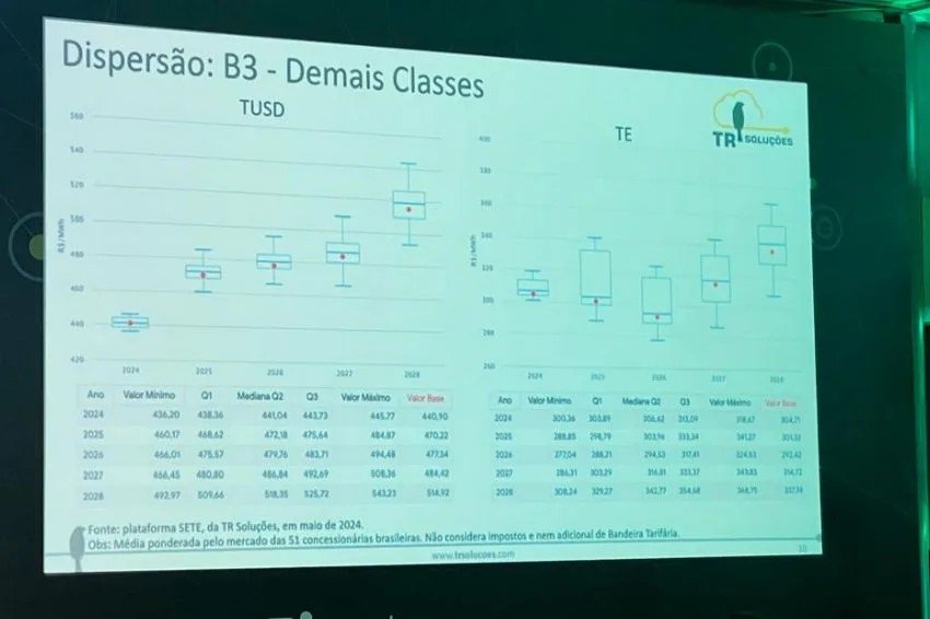 Tarifa de energia do consumidor comercial e industrial deve subir em 2024 Economia by Portal Meus Investimentos - 9 de maio de 2024 Publicidade Informação foi divulgada pela TR Soluções, empresa especializada em tecnologia para o setor elétrico, no Greener Summit A tarifa de energia elétrica do consumidor comercial e industrial na baixa tensão, conhecido como B3, deverá sofrer um aumento médio de 2,19% em 2024, segundo cálculos da TR Soluções, empresa especializada em tecnologia para o setor elétrico. Em 2023, a soma da TE (Tarifa de Energia) e da TUSD (Tarifa de Uso do Sistema de Distribuição) ficou em R$ 729,64 por MWh, contra uma projeção de R$ 745,60 por MWh para 2024. A informação foi divulgada durante o Greener Summit, evento realizado nos dias 7 e 8 de maio, em São Paulo, e promovido pela consultoria especializada no mercado de energia solar Greener. Foto: Reprodução Do total de 51 distribuidoras analisadas (que não tiveram seus nomes divulgados), as variações tarifárias devem se comportar da seguinte forma neste ano: 2 concessionárias terão variação entre -13% e -10,1%. 6 concessionárias terão variação entre -6,7% e -4%. 11 concessionárias terão variação entre -3,2% e 0,2%. 13 concessionárias terão variação entre 0,8% e 4,9%. 12 concessionárias terão variação entre 5,7% e 9,3%. 5 concessionárias terão variação entre 10,1% e 13%. 2 concessionárias terão variação entre 17,4% e 18,6%. Fonte: CanalSolar | conta de luz Energia Solar Compartilhada sem investimentos ou obras! Quer começar a economizar agora? Insira seus dados abaixo que a nossa equipe entra em contato e cuida do restante. Nome* E-mail* Telefone* UF:ACRE ALAGOAS AMAPÁ AMAZONAS BAHIA CEARÁ DISTRITO FEDERAL ESPIRITO SANTO GOIÁS MARANHÃO MATO GROSSO MATO GROSSO DO SUL MINAS GERAIS PARÁ PARAÍBA PARANÁ PERNAMBUCO PIAUÍ RIO DE JANEIRO RIO GRANDE DO NORTE RIO GRANDE DO SUL RONDÔNIA RORAIMA SANTA CATARINA SÃO PAULO SERGIPE TOCANTINS Economia para: ResidênciaComércio EU QUERO ECONOMIZAR… O post Tarifa de energia do consumidor comercial e industrial deve subir em 2024 apareceu primeiro em Portal Energia Limpa. Compartilhe isso: Clique para compartilhar no Facebook(abre em nova janela) Facebook Clique para compartilhar no X(abre em nova janela) 18+ Clique para compartilhar no WhatsApp(abre em nova janela) WhatsApp Clique para compartilhar no Telegram(abre em nova janela) Telegram Mais Clique para compartilhar no LinkedIn(abre em nova janela) LinkedIn Clique para compartilhar no Tumblr(abre em nova janela) Tumblr Clique para imprimir(abre em nova janela) Imprimir Relacionado